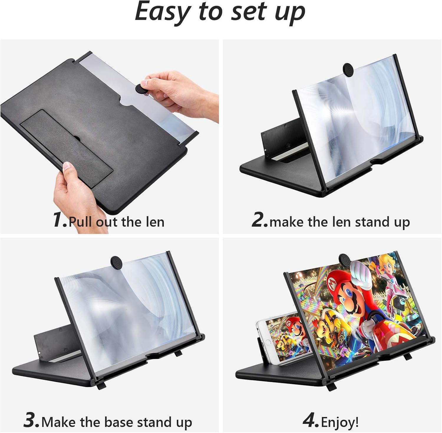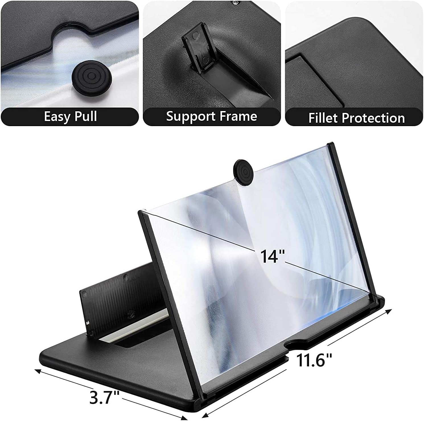 - 【3D HD Screen Amplifier】 Our 14" screen magnifier for cell phone is compatible with all cell phone. 3D HD magnifying projector screen enlarger for movies, videos and gaming. HD vision, eye protection against blue radiation, no power. It will effectively relieve the discomfort and visual fatigue causing by long time focusing on small screen.
