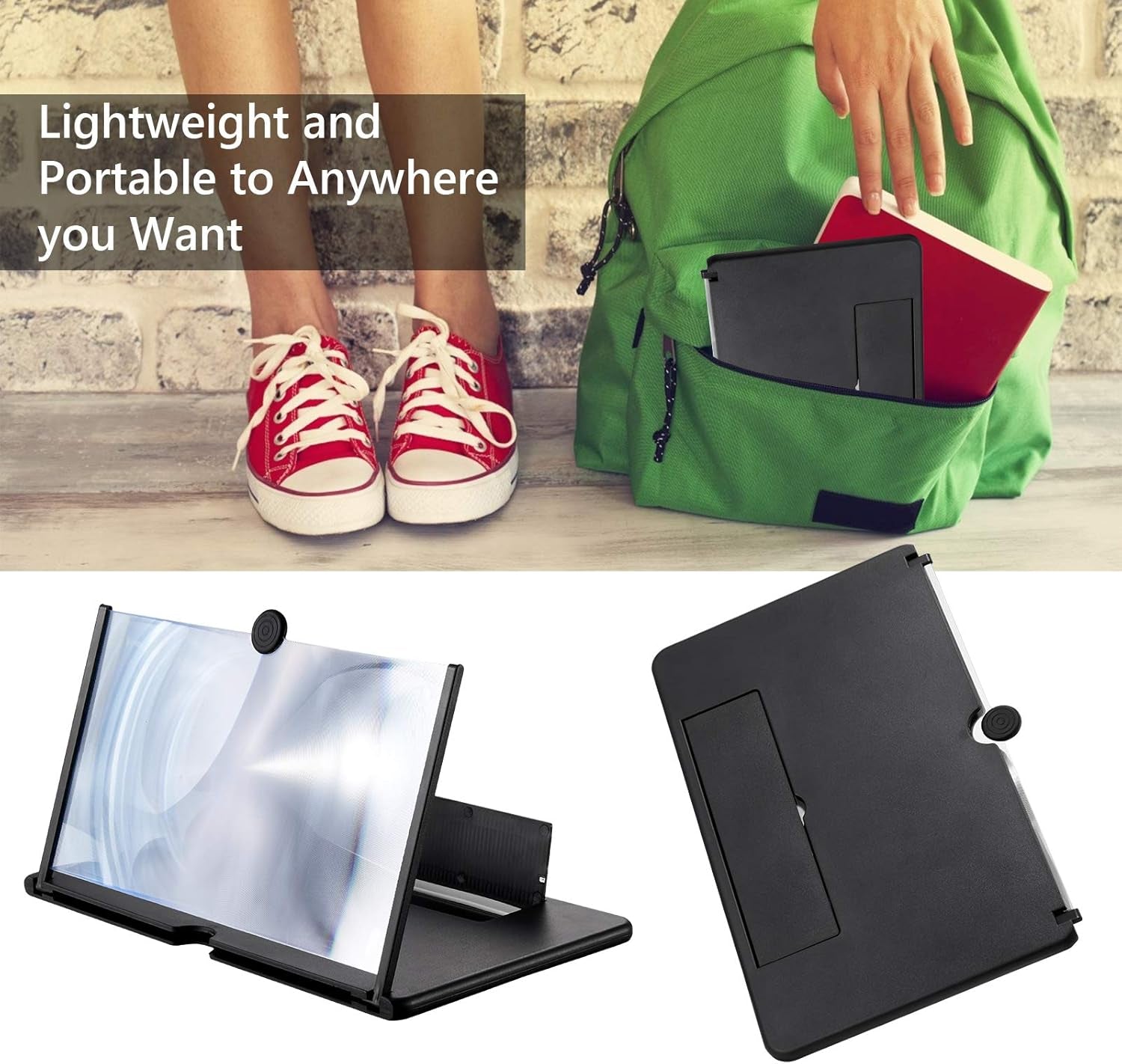 - 【Folding and Portable Design】 Phone screen amplifier adopts rotating folding design. If the height is not enough, height can be adjusted with the ring stand. The 3d screen magnifier for cell phone is lightweight and portable, it can be carried anywhere with you. Suitable for indoor, camping, journey, leisure, anywhere and etc