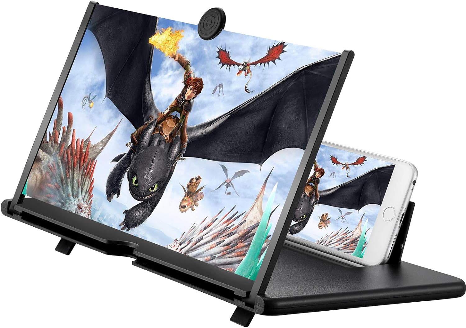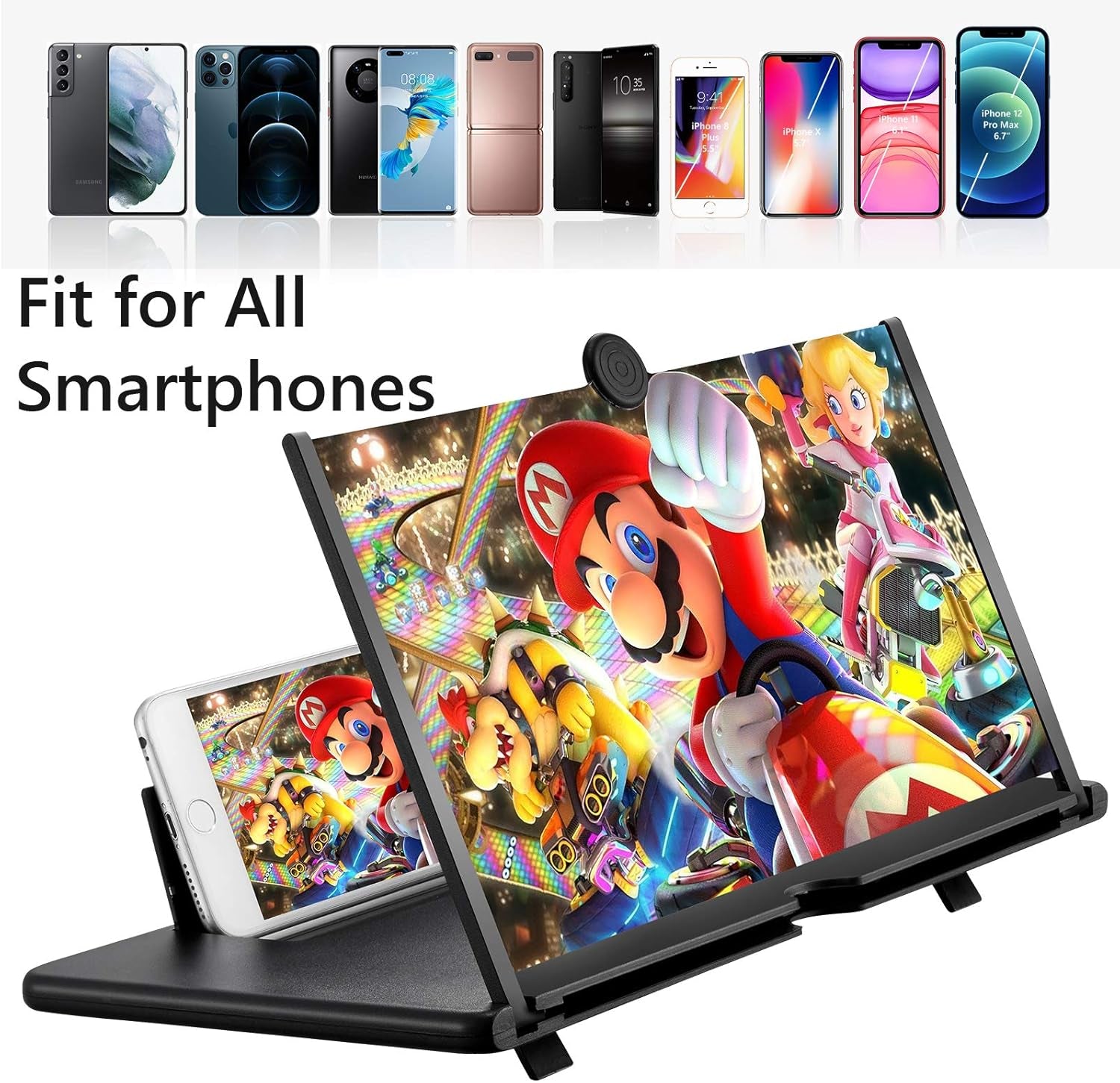 14" Screen Magnifier for Cell Phone, 3D HD Mobile Phone Magnifier Projector Screen for Movies, Videos, and Gaming, Foldable Phone Stand with Screen Amplifier Fit for All Smartphones (Black)